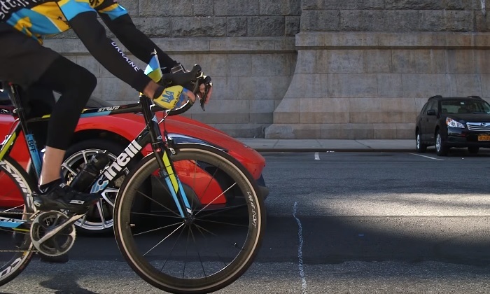 El ciclista Lucas Brunelle quiso poner a prueba una bicicleta que recién compró, y entonces encontró a un rival bastante imponente, un McLaren 675LT, quien lo retó a ver quién podría llegar más rápido a su destino.