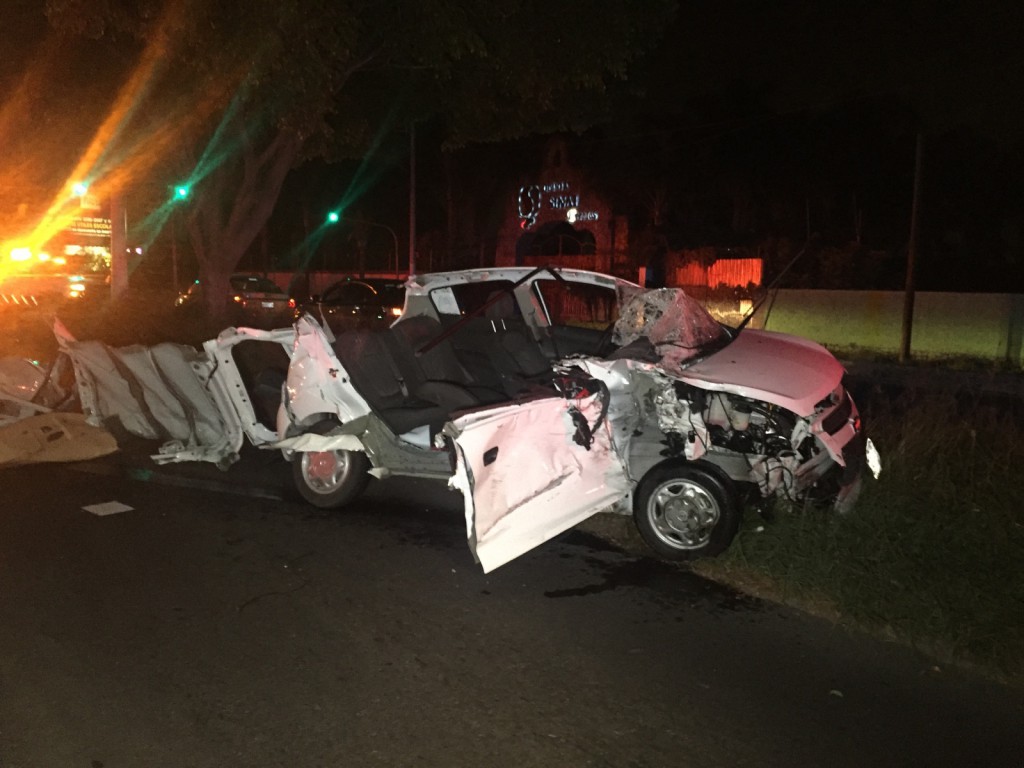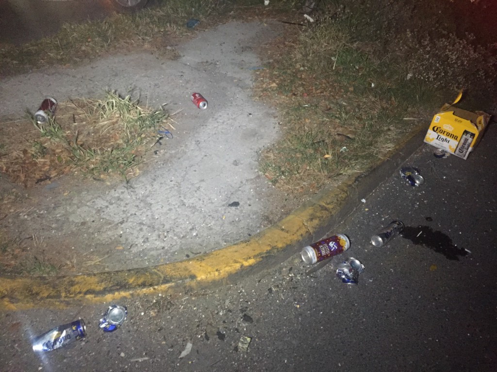 Según testigos este auto venía jugando carreritas con otro vehículo al momento del percance. El conductor quedó detenido luego de que se detectó que conducía en evidente estado de ebriedad, incluso en la zona se localizaron varias latas de cerveza.