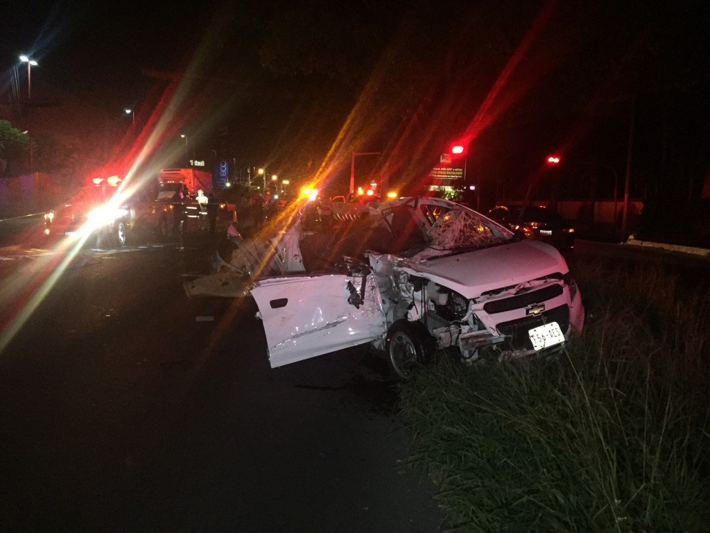 Los hechos ocurrieron en la madrugada cuando el auto Spark en color blanco se impactó contra el pesado vehículo que esperaba la vuelta con flecha. El copiloto del compacto perdió la vida de forma instantánea, ya que el golpe fue de su costado.