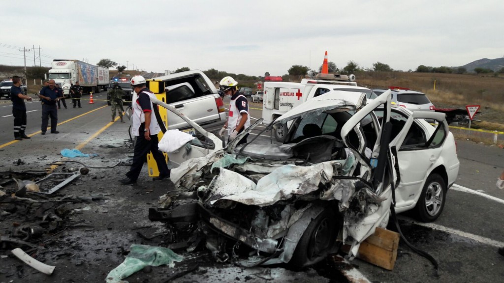 En el choque cuatro personas quedaron prensadas, tres de ellas perdieron la vida en el lugar mientras que una más fue trasladada en estado grave a un hospital de la ciudad de Aguascalientes.