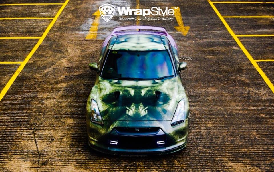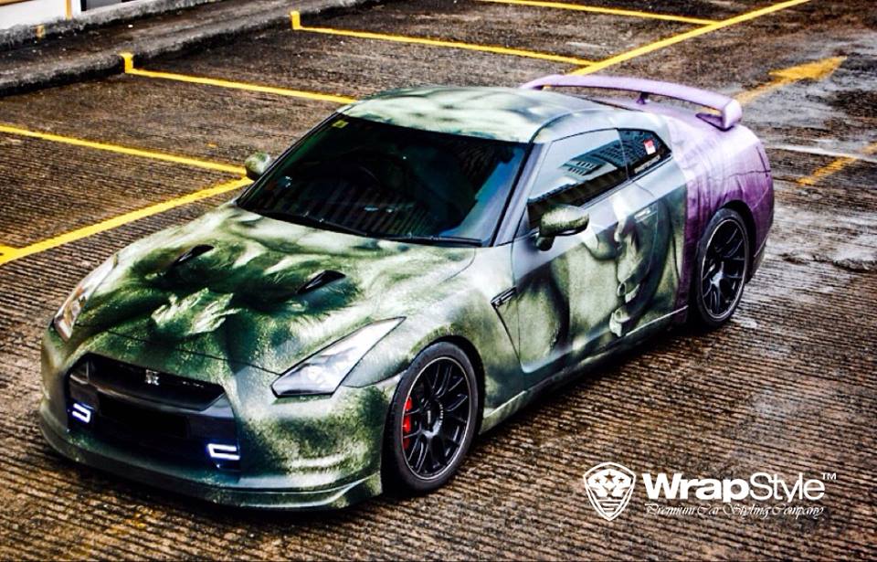 Para el hombre increíble, tomaron un Nissan GT-R que trate de emular la fuerza que tiene Hulk, incluso combinaron un poco el verde característico con el morado, el cual regularmente es usado para los pantaloncillos que usa este héroes de Marvel.