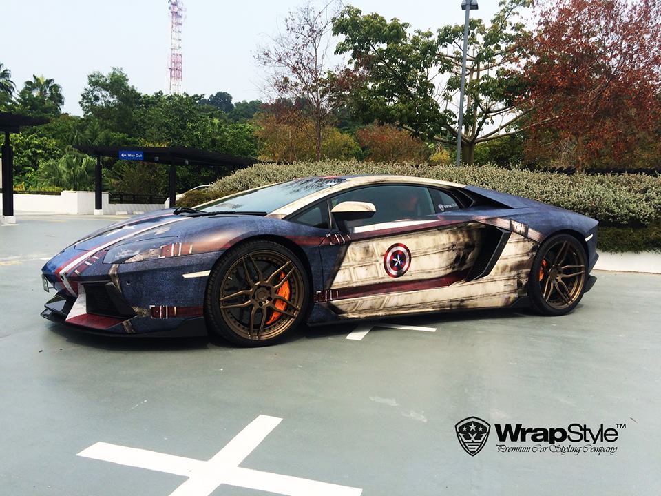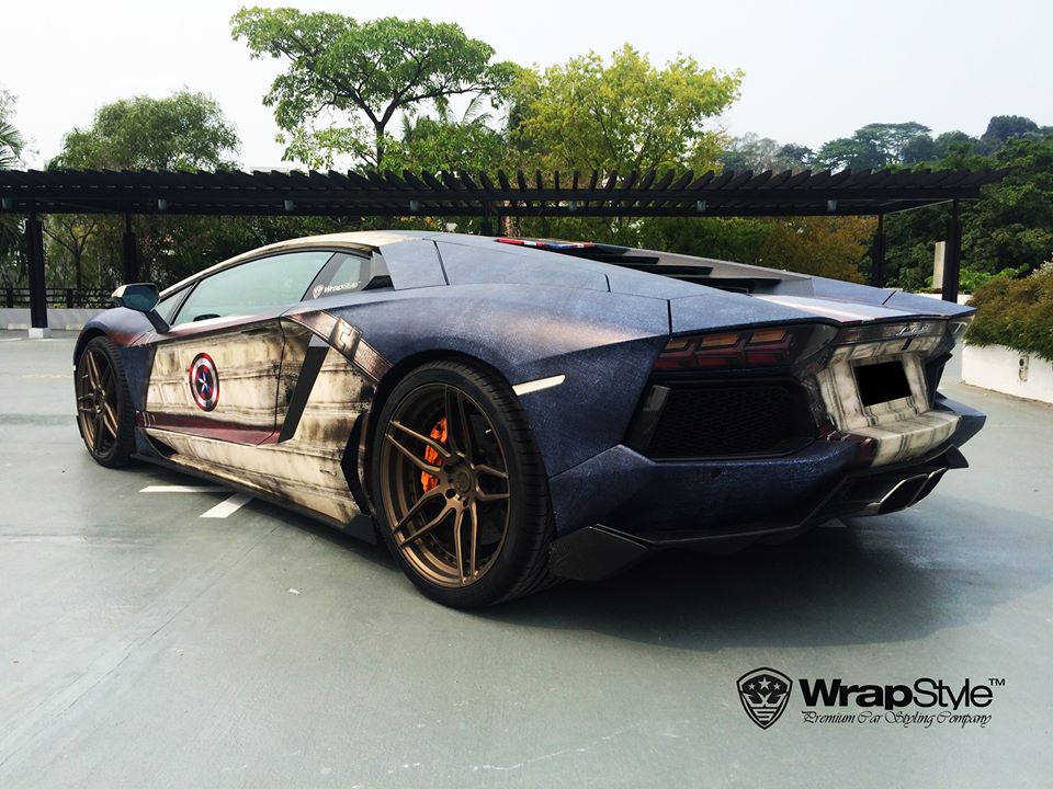 Por último, el Capitán América comparte con Ironman no sólo el protagonismo de la próxima película de Marvel, “Civil War”. De nueva cuenta un Lamborghini Aventador es la base en la que personalizan el diseño para darle vida al héroe más patriota de las historietas.