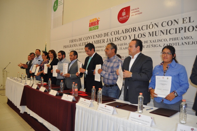 Con el propósito de reforzar la búsqueda y localización de niñas, niños, adolescentes extraviados y ausentes, desaparecidos, sustraídos, privados ilegalmente de su libertad, secuestrados o víctimas de trata de personas, la Fiscalía General del Estado (FGE) y Alerta AMBER, firmaron un convenio de colaboración con diez municipios de Jalisco.