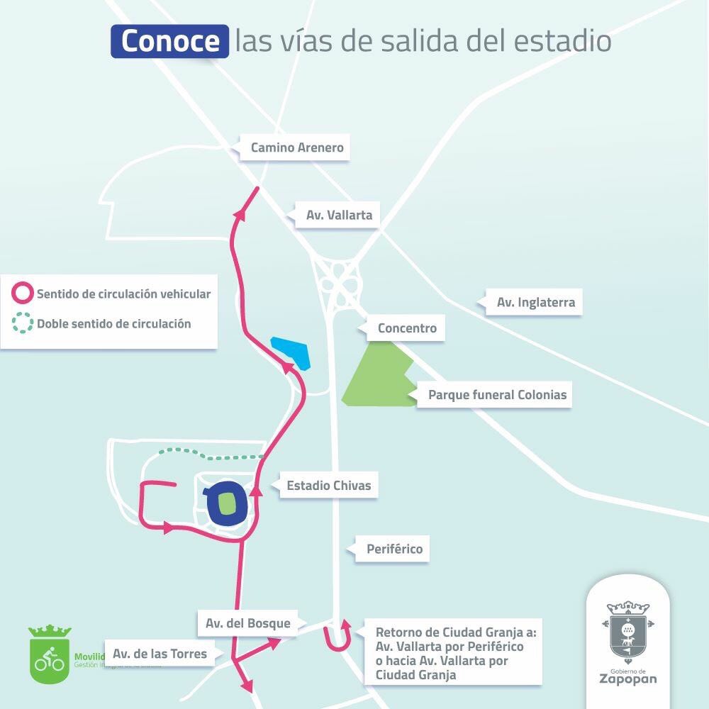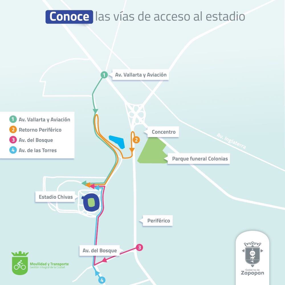 Se pondrá especial atención en las siguientes avenidas: Guadalupe de Tchaikovsky a Las Torres; Las Torres, Guadalupe a El Bajío; Vallarta, de Patria a Aviación; Aviación, de la calle 5 de Mayo a Vallarta; Periférico, de 5 de Mayo a Guadalupe, así como la periferia del estadio.