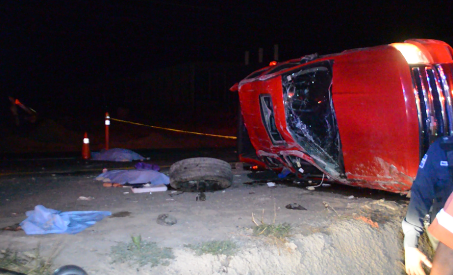 A la altura del Technology Park, donde una camioneta Chevrolet pickup en color rojo terminó dando varias vueltas, quedando volcada sobre su costado, esto provocó que los tripulantes salieran eyectados del vehículo, dos de ellos fallecieron en el punto.