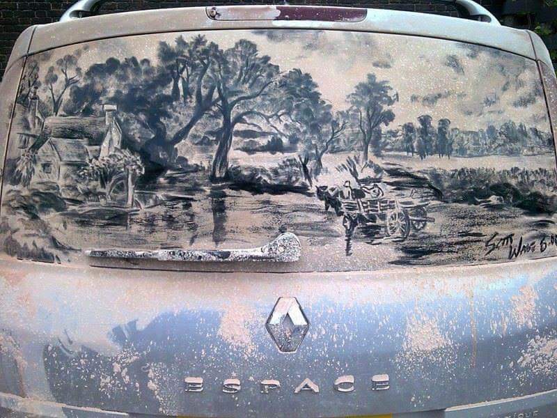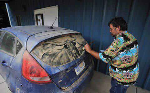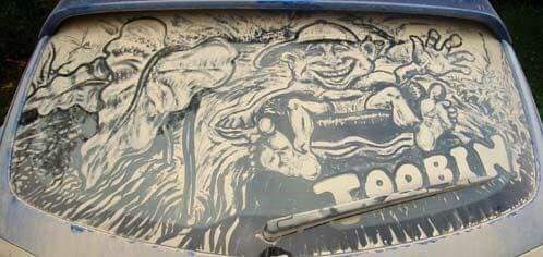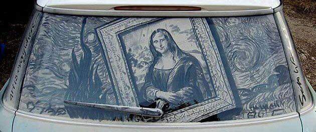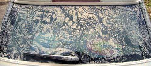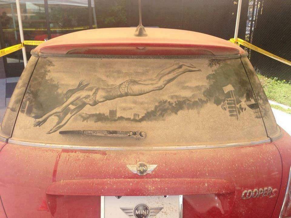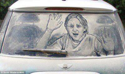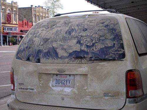 ¿Alguna vez olvidaste tu auto estacionado en una zona con mucha tierra y cuando regresaste tenía algún dibujo o letrero sugiriendo que lo laves? Estas personas decidieron sacar ventaja de la situación y crearon impresionantes obras de arte en los cristales sucios de los autos. A este tipo de dibujos se les conoce como «Dirt Art».