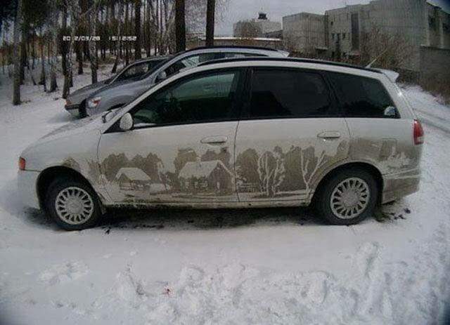 Para que un vehículo presente la suciedad requerida, es necesario estacionarlo en alguna locación con condiciones desérticas o llenarlo previamente con arena y tierra. Este tipo de arte se volvió popular en internet y basta hacer una búsqueda en Google Images para darte cuenta de la versatilidad de diseños que se han creado hasta el momento.