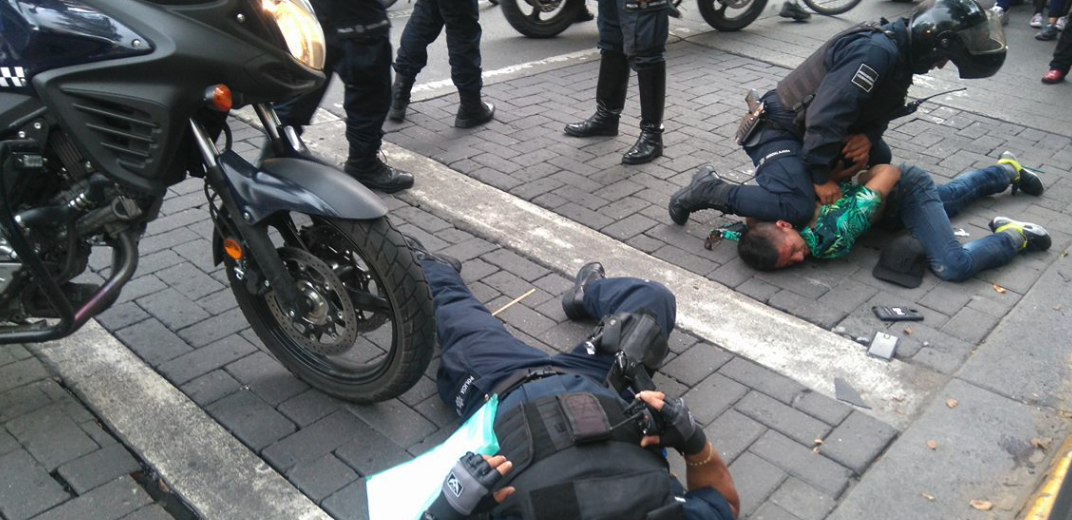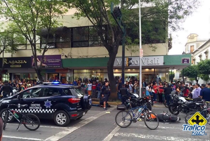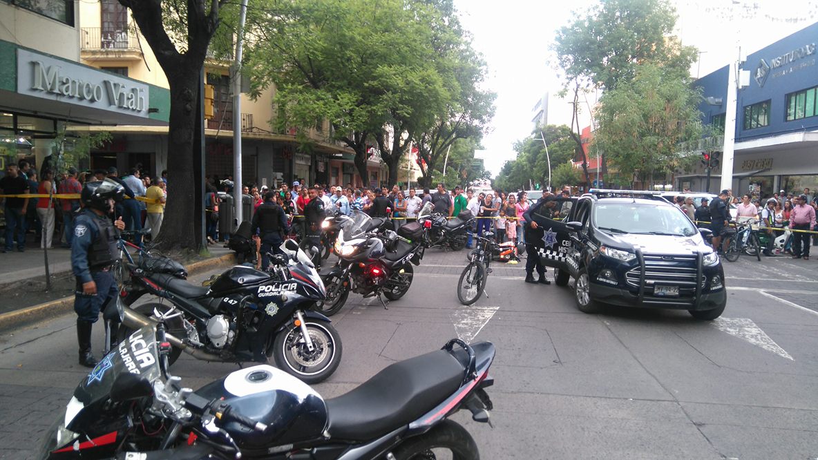 Fue hasta el cruce de la avenida Juárez y la calle Maestranza, en el Centro Histórico, donde los tripulantes de la moto impactaron a uno de los policías motorizados, por lo que los tres cayeron al suelo.