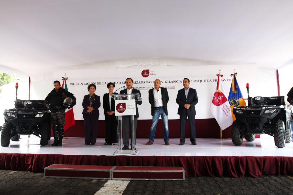 El Fiscal General del Estado, Eduardo Almaguer, presentó esta mañana la Unidad Motorizada que apoyará con labores de vigilancia en el Bosque de La Primavera.