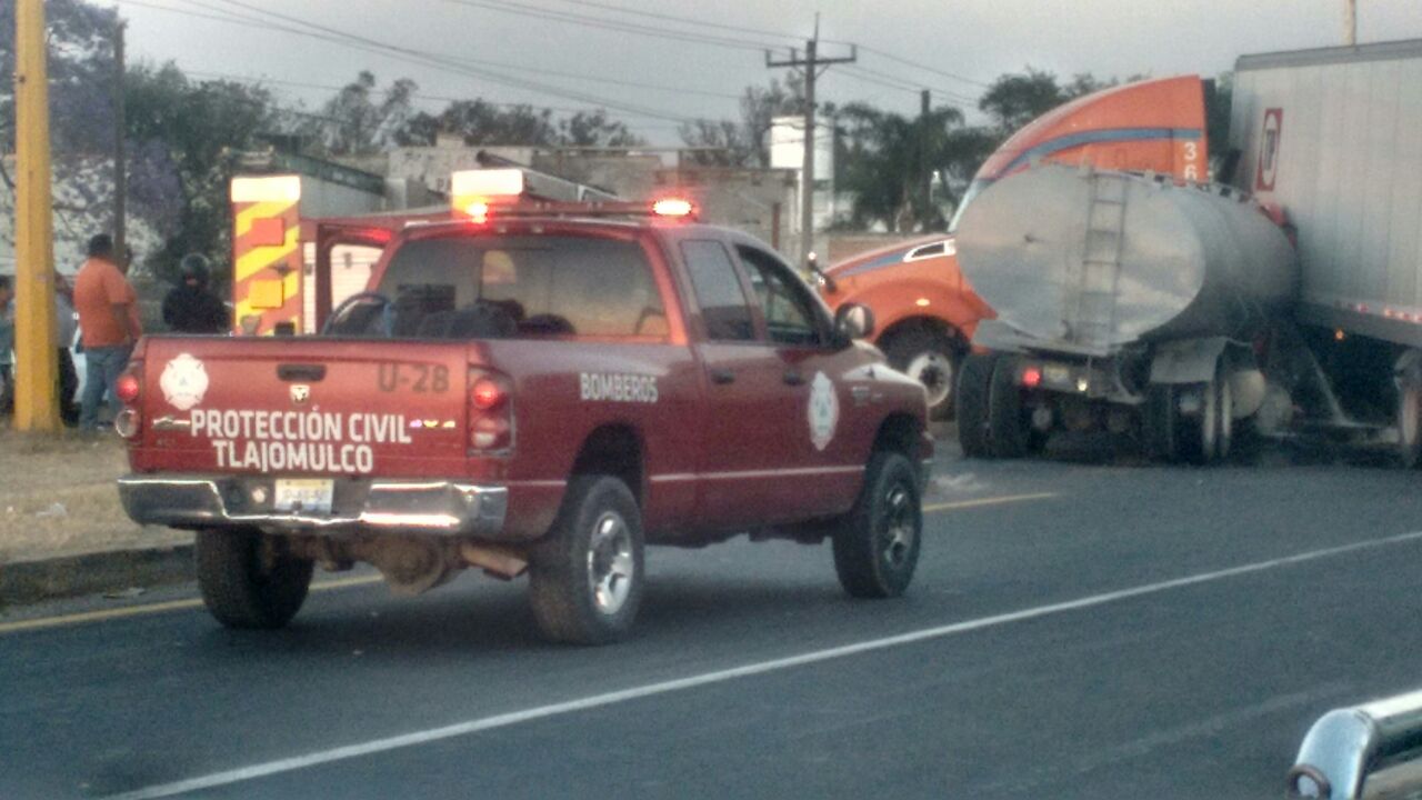 Hasta el lugar arribaron elementos de la Unidad Estatal de Protección Civil y Bomberos de Jalisco, así como bomberos de Tlajomulco, quienes realizaron labores de recuperación y lavado de cinta asfáltica para evitar la emanación de vapores.