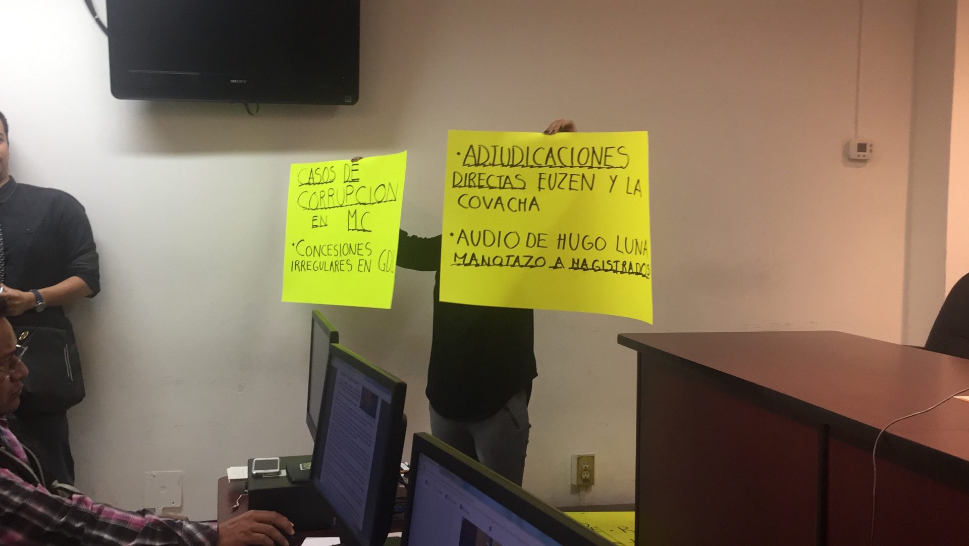 La priísta portaba pancartas en donde se leían acusaciones como: «Casos de corrupción en MC», «Concesiones irregulares en Guadalajara», «Filtración del padrón electoral x MC», entre otras.