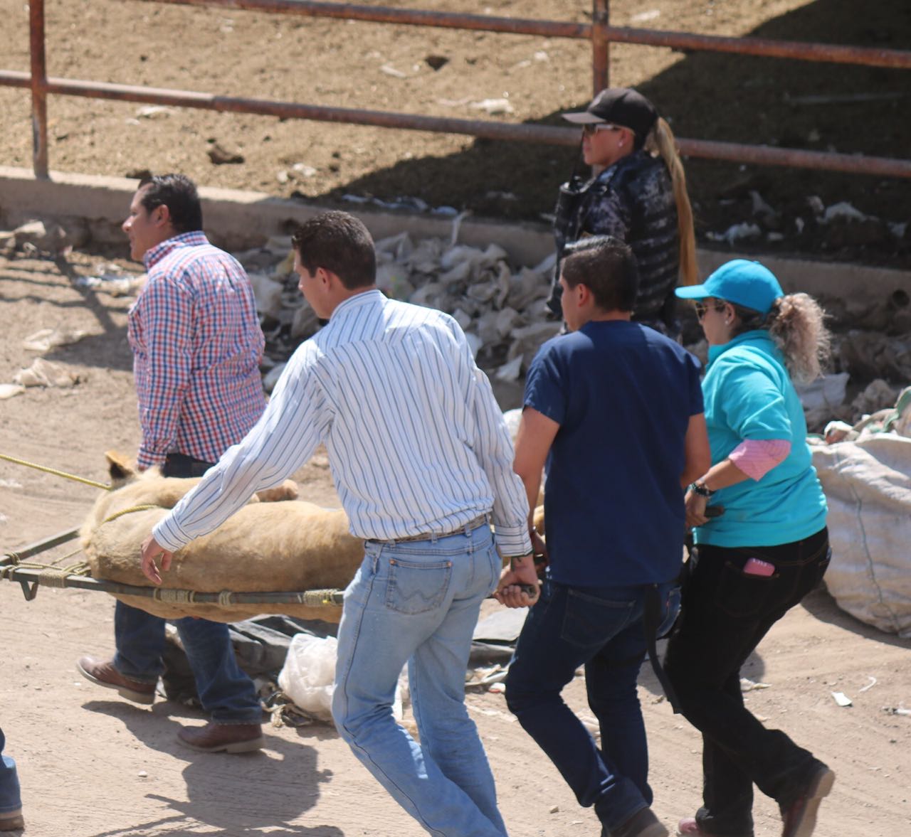 Según el reporte, la situación no representaba riesgo para las personas, sin embargo se encontraba en una zona poco accesible por lo que se tuvieron que disparar dardos tranquilizantes y esperar a que el león fuera sedado.