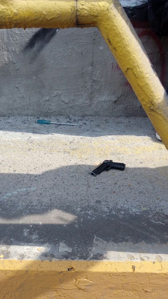 En el lugar, le fueron asegurados una pistola y un desarmador, con los que amenazó a su víctima. Tras ser trasladado a la Cruz Verde y hacerle una radiografía, le encontraron otra arma de fuego escondida en su ano.