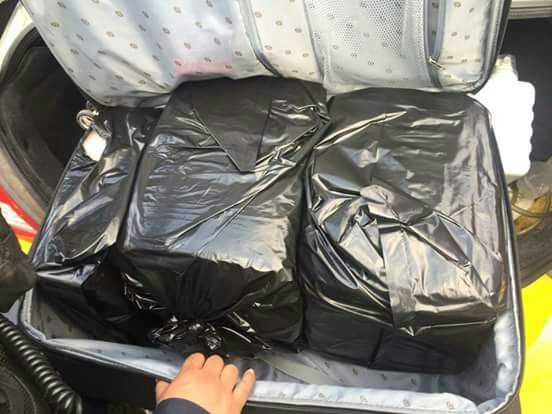 Los hechos ocurrieron en el cruce de la avenida Niños Héroes y la calle Simón Bolivar, cuando los ahora detenidos viajaban a bordo de un vehículo de alquiler. Al ser revisados por elementos de la policía municipal, se les descubrieron casi 100 kilogramos de droga dentro de cuatro maletas.