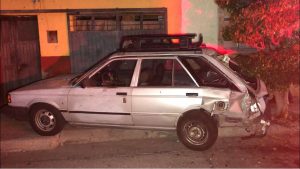 El conductor de una camioneta Nissan de atrasado modelo impactó a un vehículo que se encontraba estacionado, un puesto de comida y finalmente frenó su trayectoria en el muro de una vivienda.