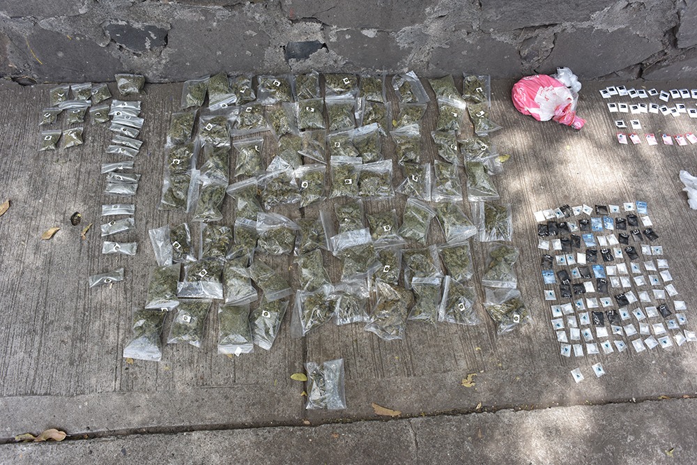 Al arribo de las autoridades, varios sujetos que estaban en las inmediaciones de las calle Los Ángeles y Gabino Barreda se echaron correr cuando notaron la presencia de los uniformados, dejando abandonadas en el lugar diversas drogas entre las que destacan dosis de vegetal verde, piedra base, polvo blanco así como 5 cargadores pertenecientes aun arma de fuego calibre 22 los cuales no estaban abastecidos con cartuchos útiles.