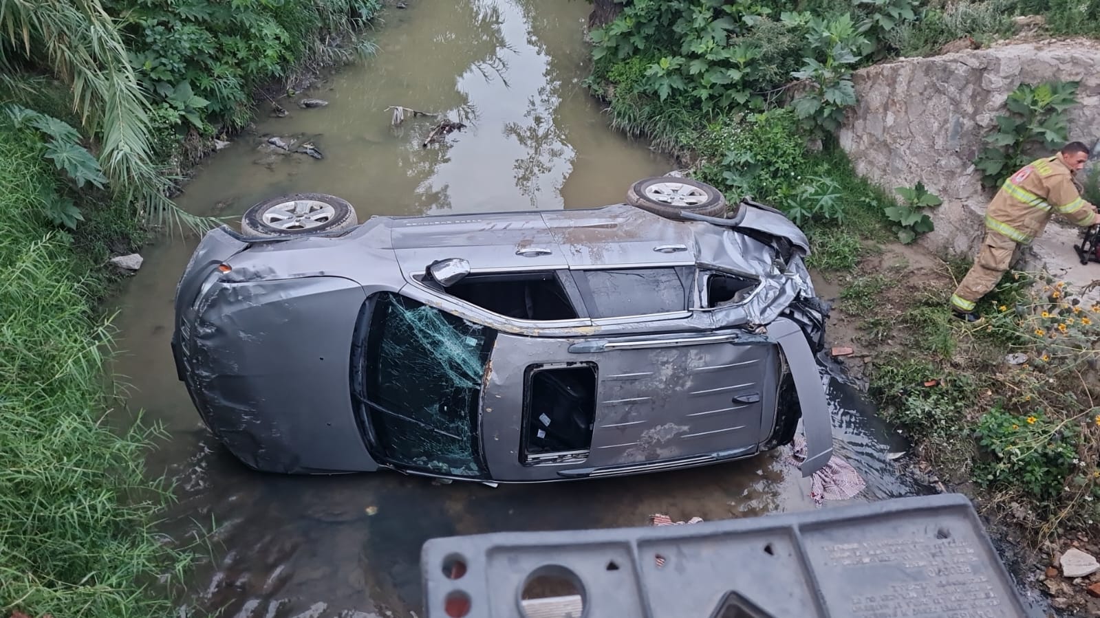Así fue cómo terminó una camioneta volcada al interior de un canal