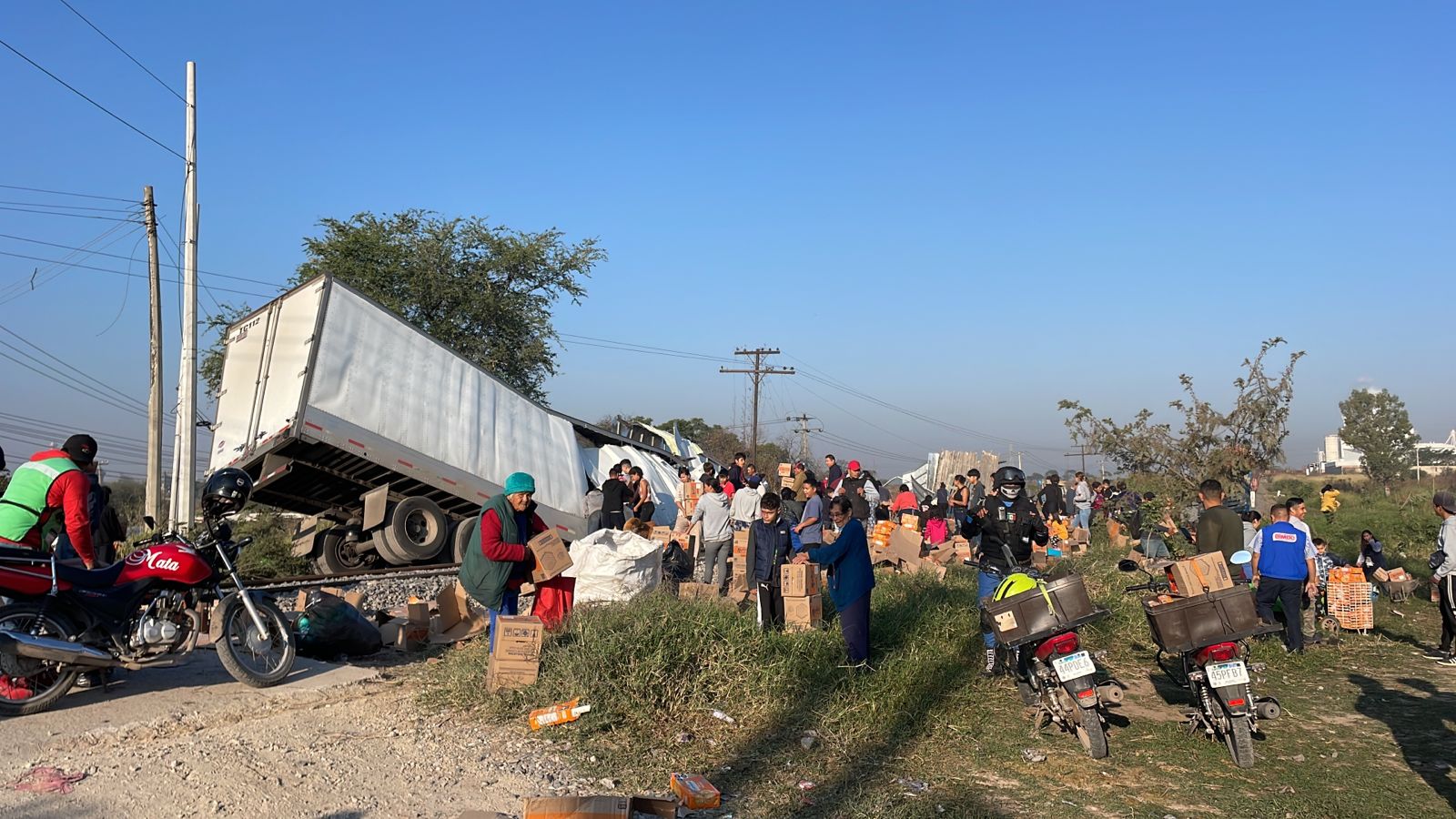 El tráiler quedó desecho sobre las vías y con su mercancía expuesta, pero a medida que fue removido por el personal que trabaja en el ferrocarril, varios vecinos de la zona se acercaron al tráiler que había derramado su contenido a lo largo de las vías.