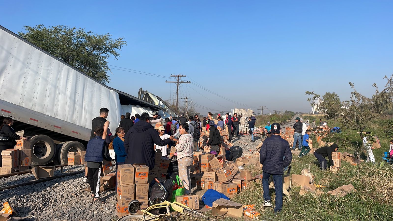 Un tráiler y el ferrocarril estuvieron involucrados en un choque en la colonia San José del Castillo, en el municipio de El Salto. Los pobladores de la zona se acercaron a la zona del percance para llevarse cajas de galletas Gamesa que contenía dicho tráiler.