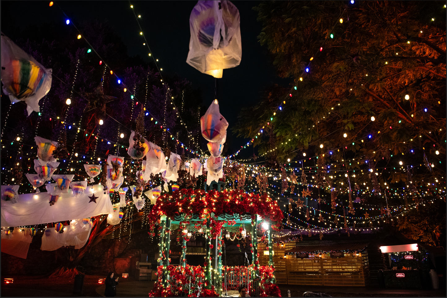 El parque contará con tres millones de puntos led, además de la iluminación del árbol de navidad de 15 metros que fue fabricado de manera artesanal, con madera reciclada.