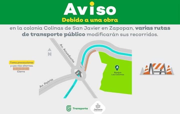 El segundo cierre lo harán sobre la lateral de avenida Patria entre la avenida Acueducto y Atlas Colomos en su sentido hacia avenida Américas. Las rutas que modificarán su servicio, sólo en su trayecto de regreso, serán C71, C120, C121A y C136.