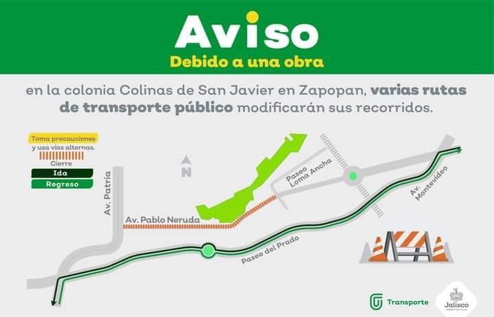 El primer cierre se llevará a cabo en la avenida Pablo Neruda entre avenida Patria y Paseo Loma Ancha, las rutas afectadas que modificarán sus recorridos serán C64, C65 y C54: