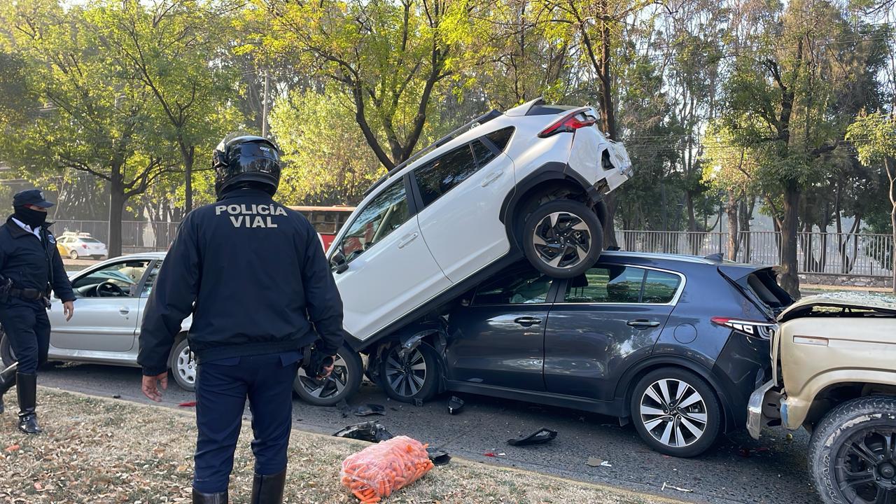 El choque fue de tal magnitud, que dejó a una camioneta encima de otra, mientras que los demás automóviles se impactaron en la parte posterior.