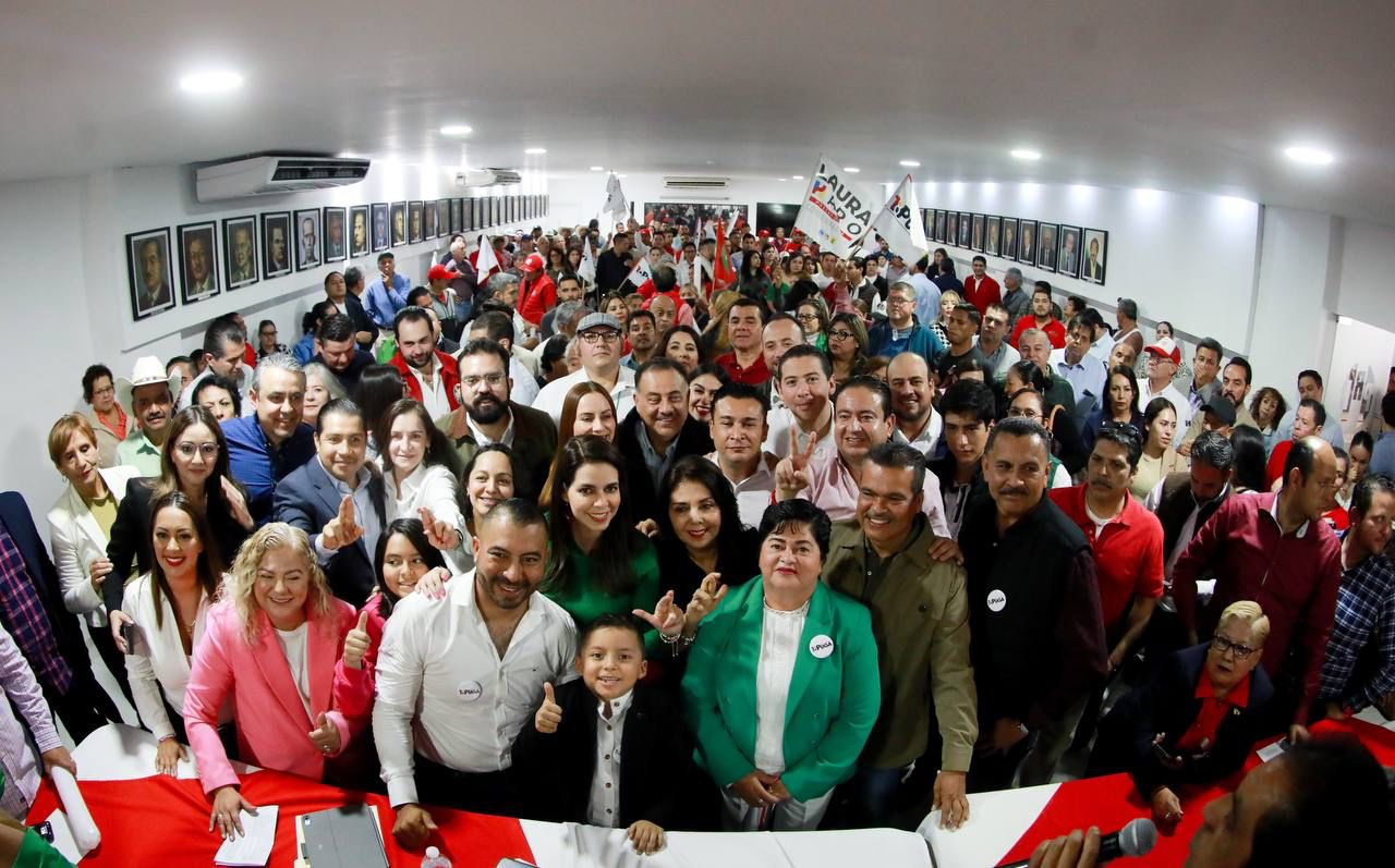 Dirigentes y militantes del blanquiazules y tricolores se dieron cita, en la sede estatal del PRI Jalisco para acompañar a los aspirantes a diputaciones federales.