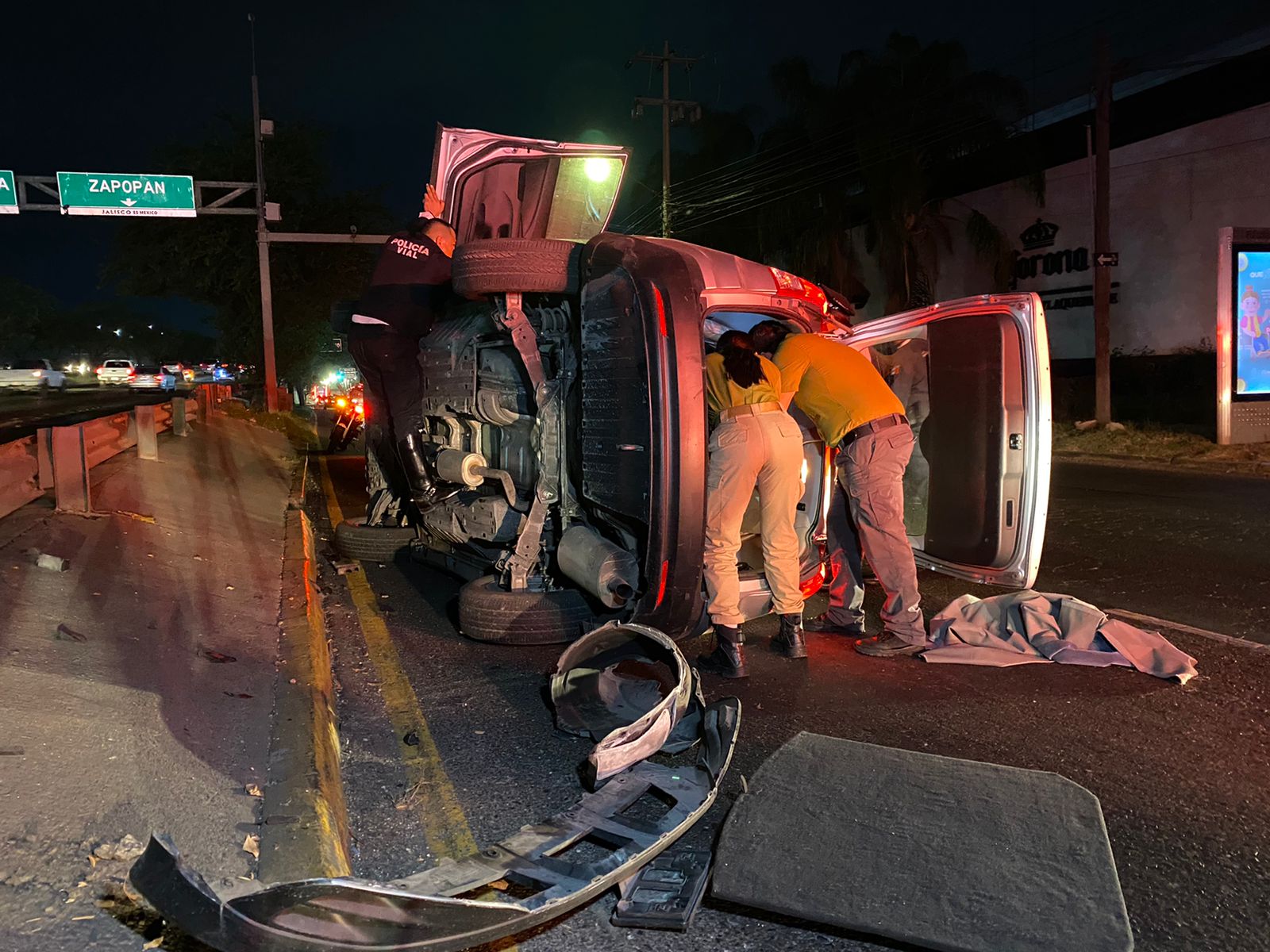 El conductor de una camioneta Honda volcó su vehículo sobre el carril lateral de la Calzada Lázaro Cárdenas a su cruce con la calle Vapor en la colonia Álamo Industrial en el municipio de San Pedro Tlaquepaque.