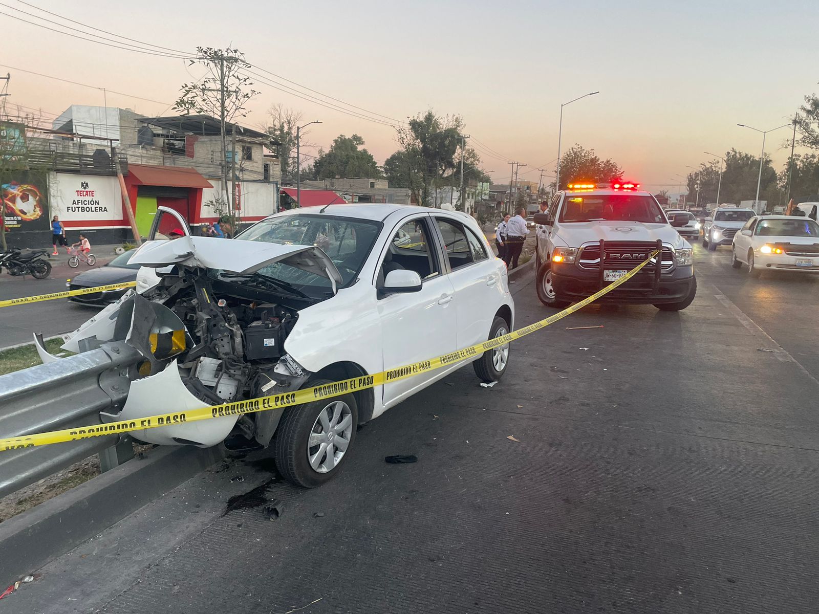 Un vehículo Nissan March en color blanco chocó contra una valla de contención ubicada sobre el anillo Periférico Poniente a su cruce con la avenida Felipe Ruvalcaba en el Colli Urbano del municipio de Zapopan.