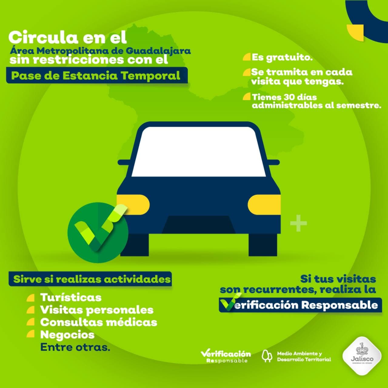 El pase de Estancia Temporal es un documento gratuito que permite circular temporalmente en Jalisco a vehículos con placas foráneas sin necesidad de realizar la prueba de “Verificación Responsable”. Este pase es válido en municipios donde está vigente el Programa de Verificación Responsable y nosotros te mostramos tips de como obtenerlo: