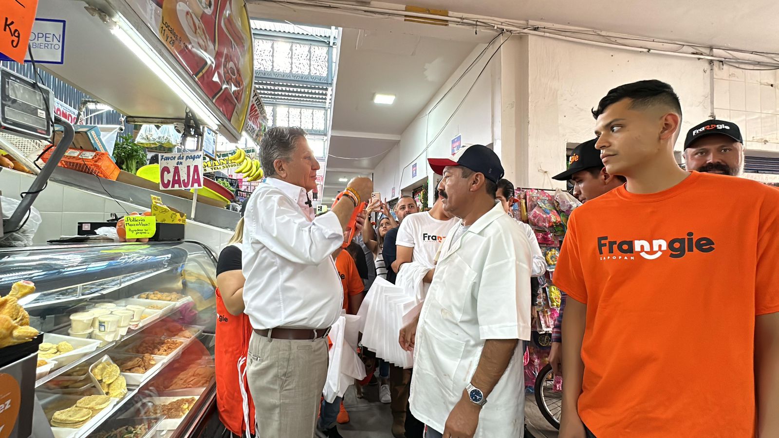 El candidato a la presidencia municipal de Zapopan del partido Movimiento Ciudadano (MC), Juan José Frangie Saade, hizo una serie de compromisos ante comerciantes del mercado Constitución, en la colonia del mismo nombre, también conocida como Consti.