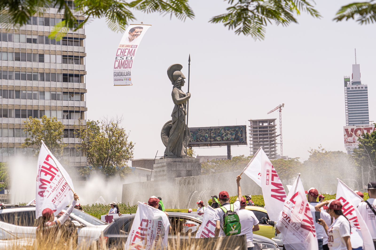Con la finalidad de dar a conocer de primera mano su proyecto de trabajo para la ciudad, el candidato a la alcaldía de Guadalajara por Morena y la mega alianza Sigamos Haciendo Historia en Jalisco, Chema Martínez, realizó este sábado una pega de calcomanías en la Glorieta de La Minerva.