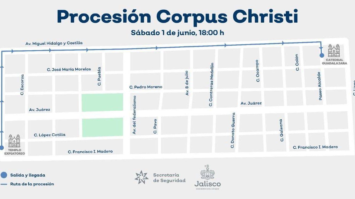 Este sábado 1 de junio habrá cierre de varias calles céntricas en Guadalajara con motivo de la procesión del Corpus Christi.