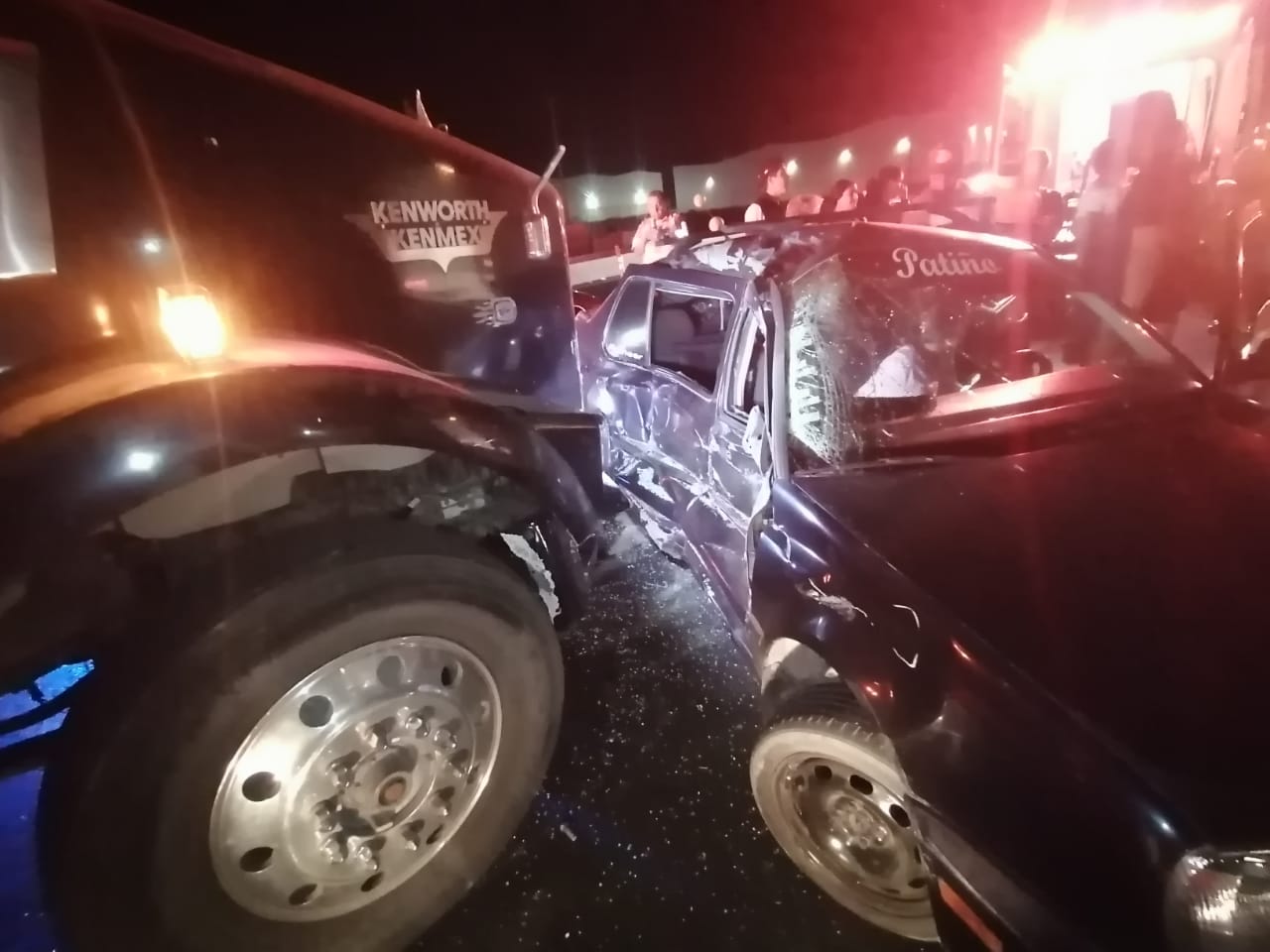 El aparatoso accidente fue entre un tráiler y un vehículo Jetta A3 en el que viajaban cuatro personas, las cuales resultaron heridas, además, un bebé de tres meses y un menor de tres años de edad.