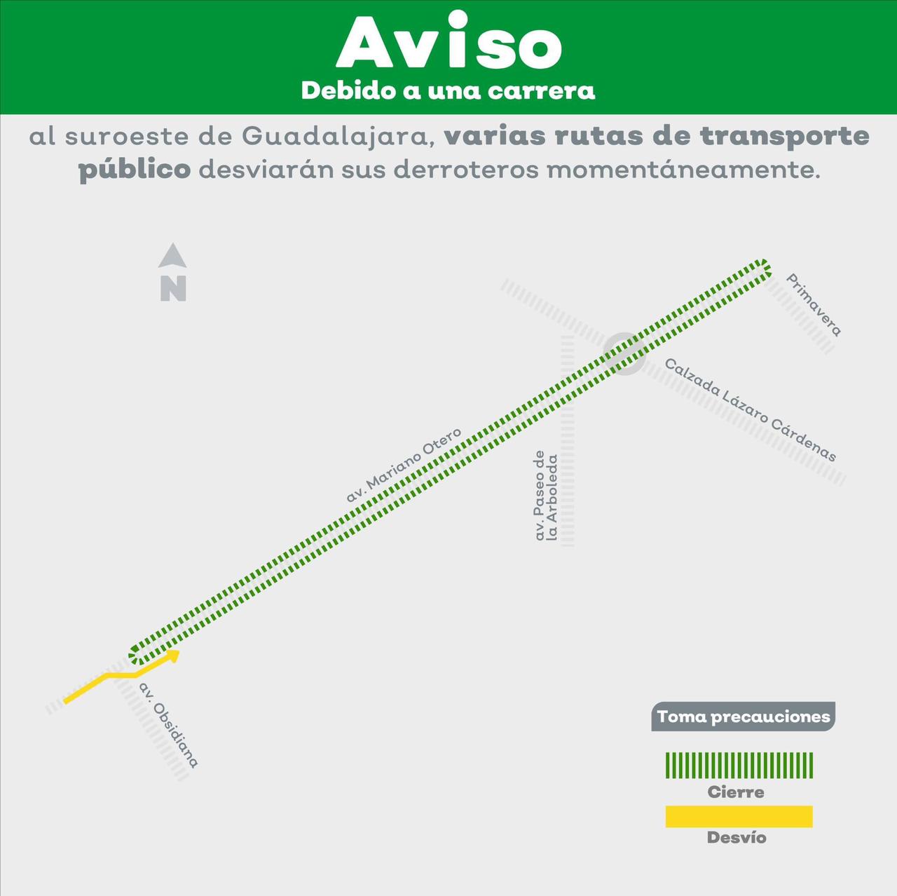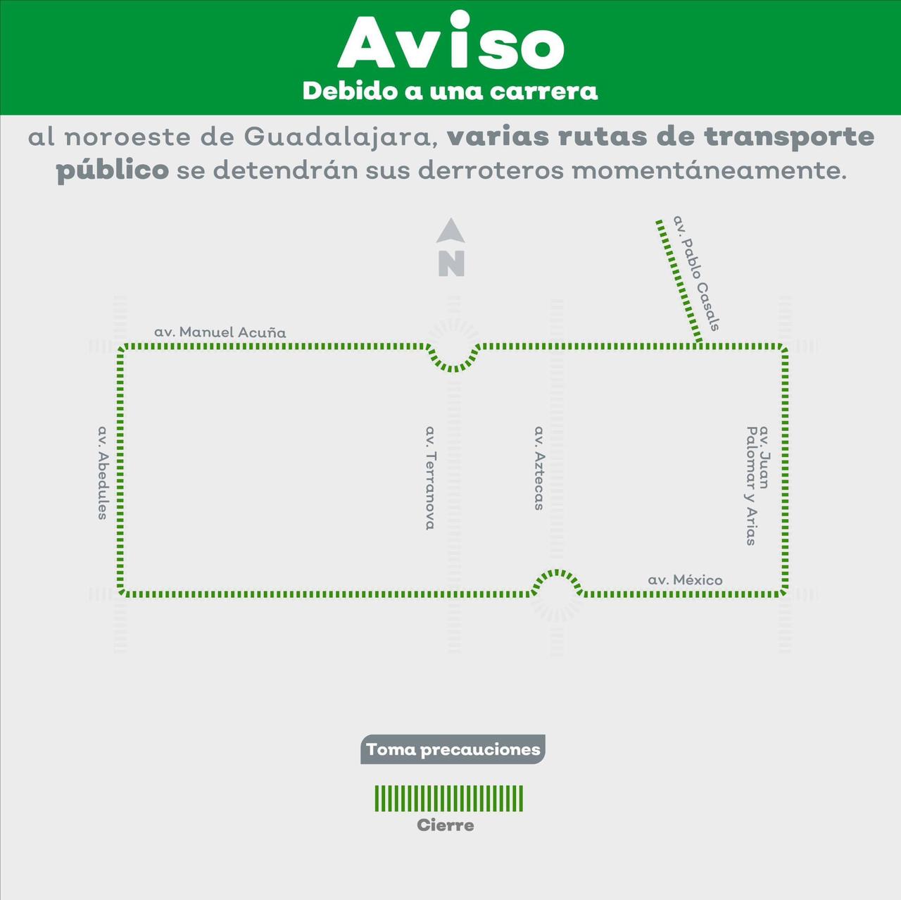 Varias rutas del transporte público modificarán sus recorridos este domingo 26 de mayo en Guadalajara y Zapopan, debido a dos carreras deportivas.