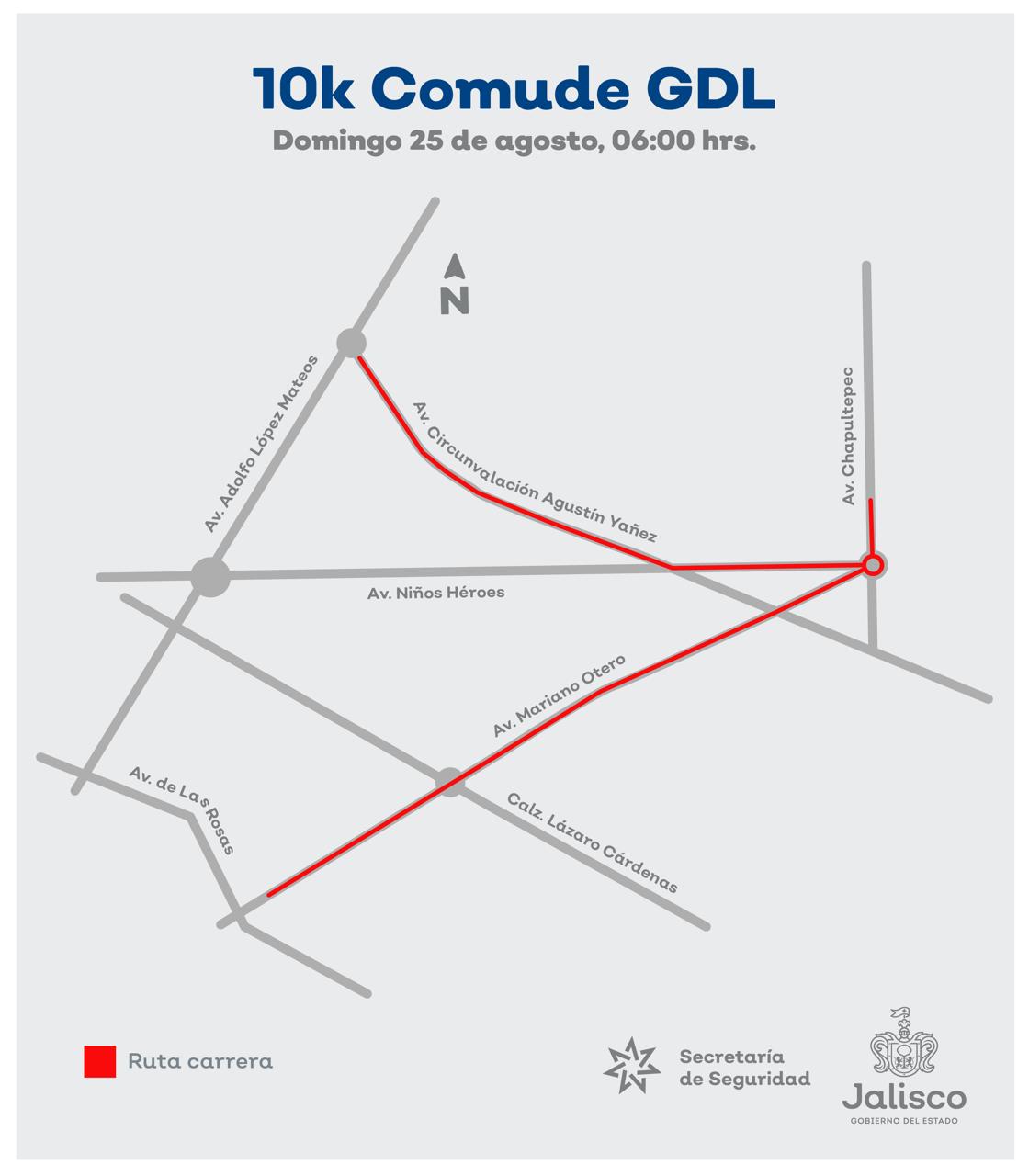 La Secretaría de Seguridad del Estado (SSE), a través de la Comisaría de la Policía Vial, informó que se implementará un operativo especial para la carrera de 10 kilómetros que organizará el Consejo Mundial del Deporte de Guadalajara este domingo 25 de agosto.