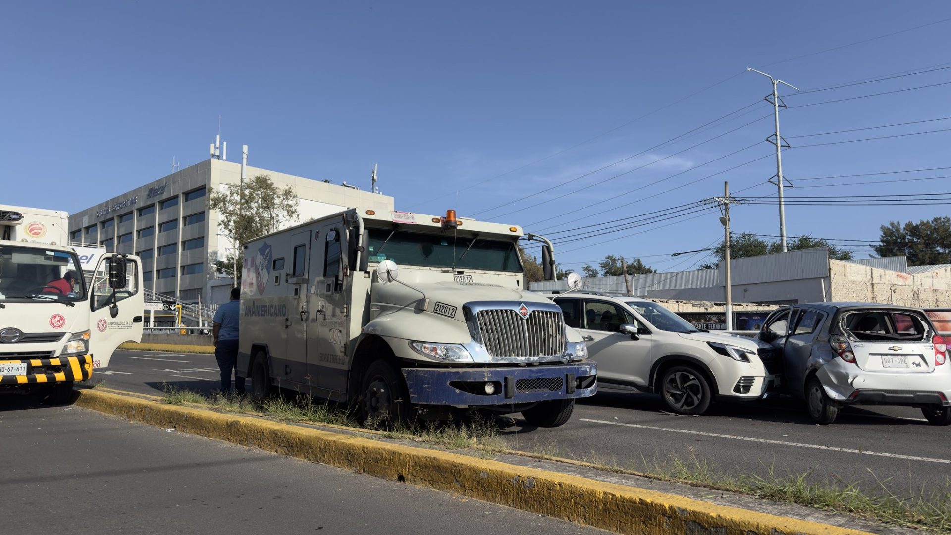 Un choque entre dos carros y una camioneta particular se registró sobre la avenida Vallarta justo afuera de la Gran Plaza, en sentido hacia La Glorieta de la Minerva.