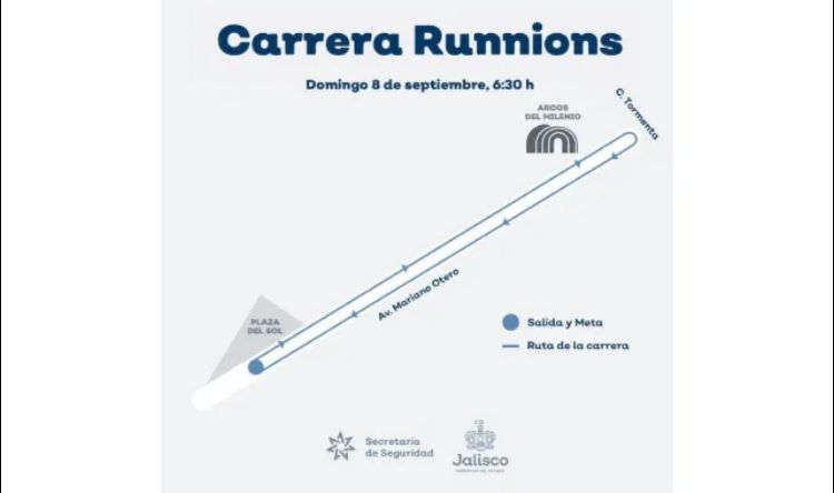 La primera carrera se llevará a cabo sobre los carriles centrales de la avenida Mariano Otero, en la colonia Ciudad del Sol del municipio de Zapopan, en la cual los participantes saldrán por los carriles centrales de dicha avenida, frente a la calle e Amatista, avanzarán hacia el nororiente y a la altura de la calle Primavera se retornarán por la misma artería hasta encontrarse con la meta.