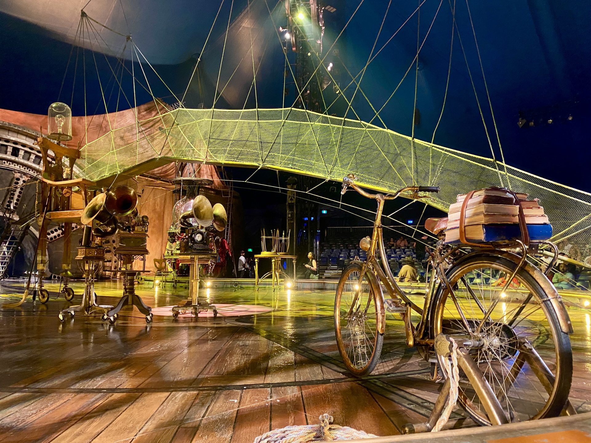 La trama, realmente vaga, no tiene demasiada importancia. Lo sobresaliente de “Kurios” es el equilibrio entre lo efímero y el espectáculo. Su magia no reside en lo que hacen los artistas, sino en cómo lo hacen. La escenografía está meticulosamente detallada, y la dirección de escena cuida no solo los 13 números, sino también cada espacio ocupado por los artistas, como si fuera una pintura o una fotografía conmovedora: un paraíso vintage. Además, la precisión y sonorización impecable de la banda en vivo, inspirada en el folk y el jazz europeos, crean el marco perfecto para acrobacias, malabarismos, contorsionismo, piruetas, torres humanas y vuelos vertiginosos. Entre los momentos más destacados están los virtuosos movimientos de yo-yo, una cena en la que los personajes están de cabeza y un ingenioso Circo Invisible.