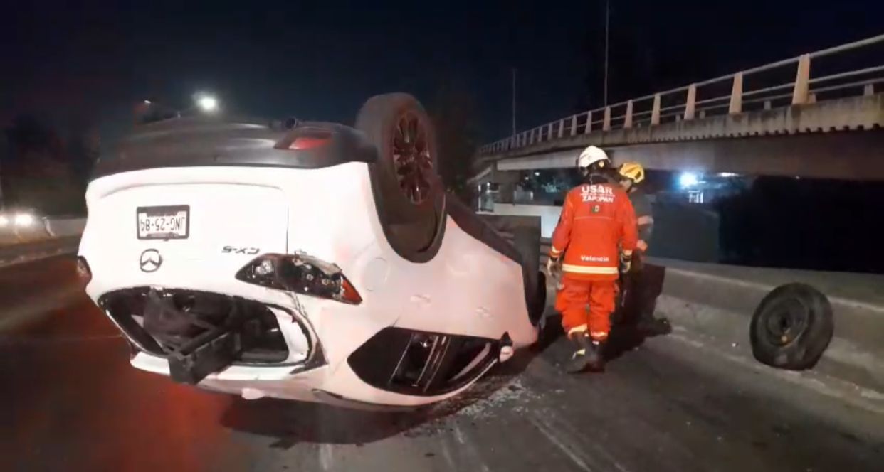 Terminó volcada una camioneta modelo Mazda CX-30 a tempranas horas de hoy martes sobre un carril lateral de la avenida Periférico Sur, a la altura del Instituto Tecnológico y de Estudios Superiores de Occidente (ITESO). El conductor, desaparecido, habría dejado su vehículo tras el accidente.