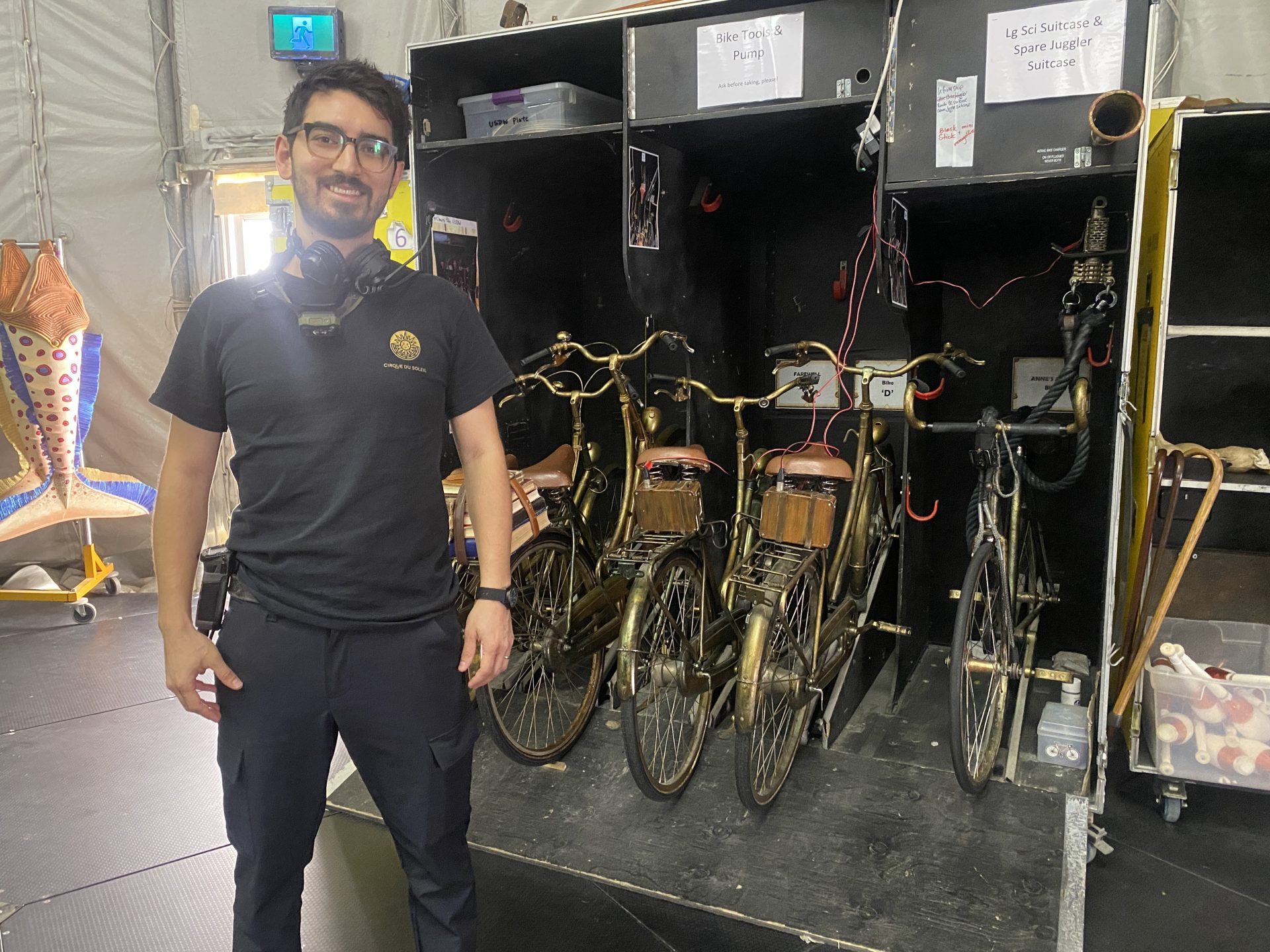 Es increíble lo que sucede detrás del telón en cada función. Al igual que el escenario, el backstage también está coreografiado, lo que impide moverse con libertad. Todo está perfectamente sincronizado para que la función se desarrolle sin contratiempos. En ciertos momentos, ¡llegan a coincidir 25 técnicos y 50 artistas en el backstage!