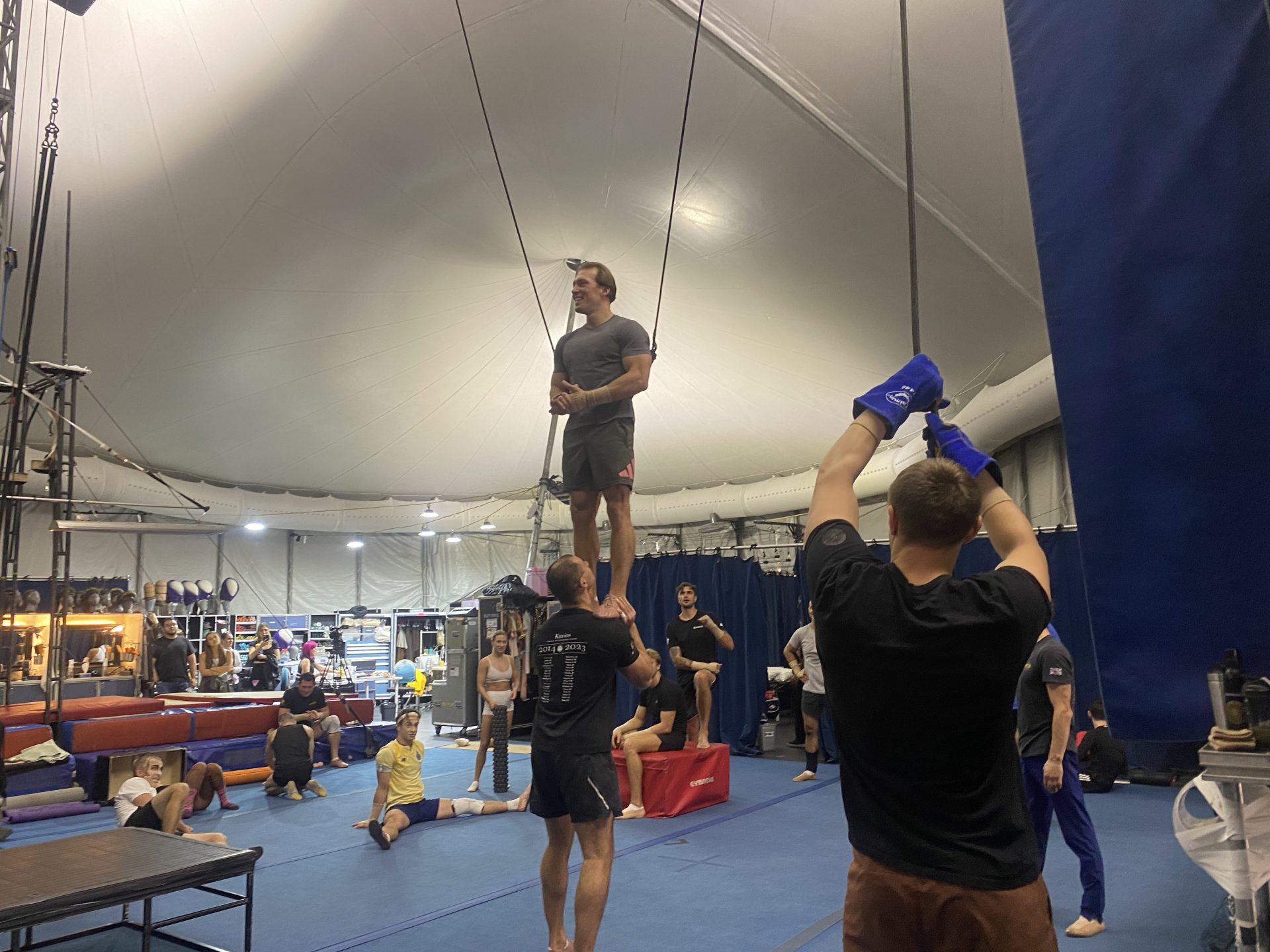 Durante un recorrido por las entrañas del circo, ¡Sí Jalo! presenció el ensayo de los siete acróbatas que rebotan y realizan maniobras a más de 12 metros de altura sobre una red tipo trampolín.