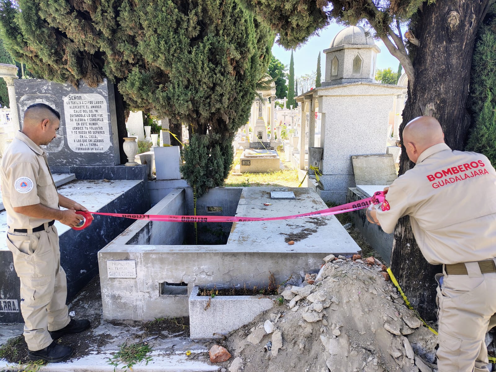 En el operativo también participaron elementos de Protección Civil y Bomberos de Guadalajara, quienes acordonaron un total de 52 mil criptas que no cumplían con los requisitos de seguridad. Mientras, efectivos de la policía municipal replegarán un total de 768 elementos en más de 100 vehículos por los panteones para realizar recorrido de seguridad, así como supervisión durante el 1 y 2 de noviembre.
