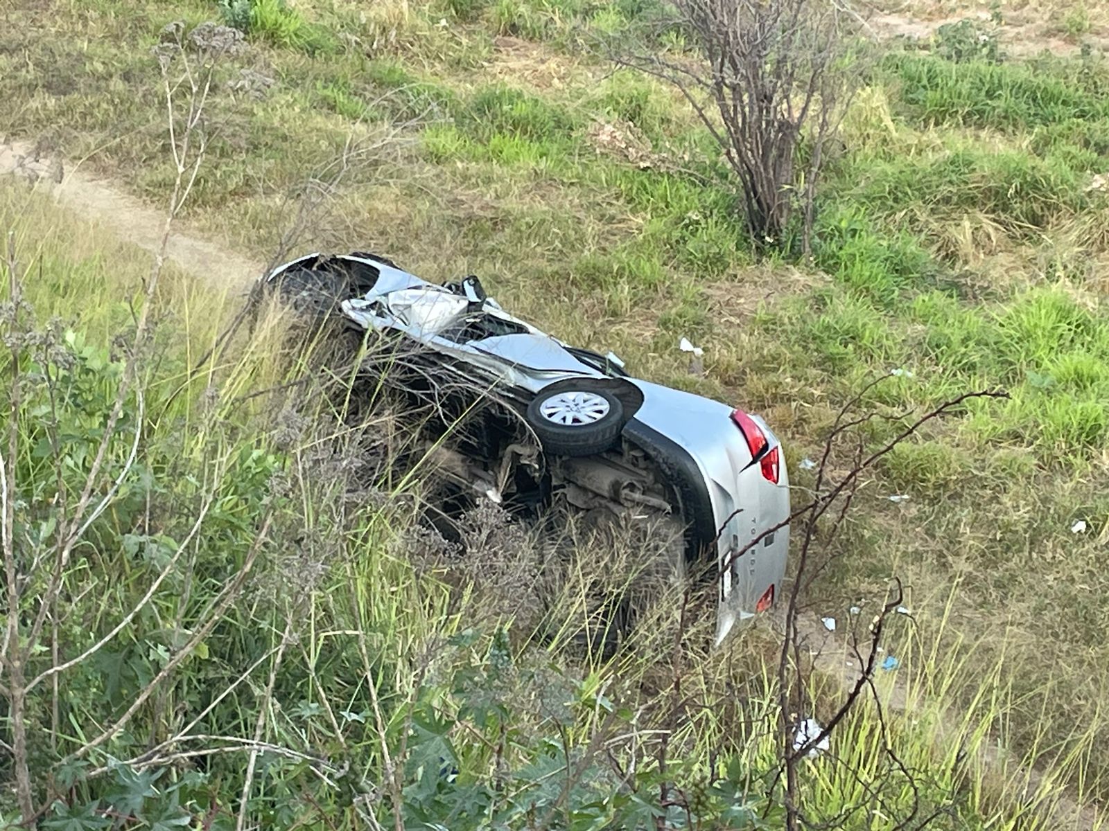 En el sitio se localizó, a una altura de cinco metros, un vehículo modelo SEAT volcado sobre uno de sus costados, dentro del cual su conductor, Bryan Jair «N», permanecía atrapado.