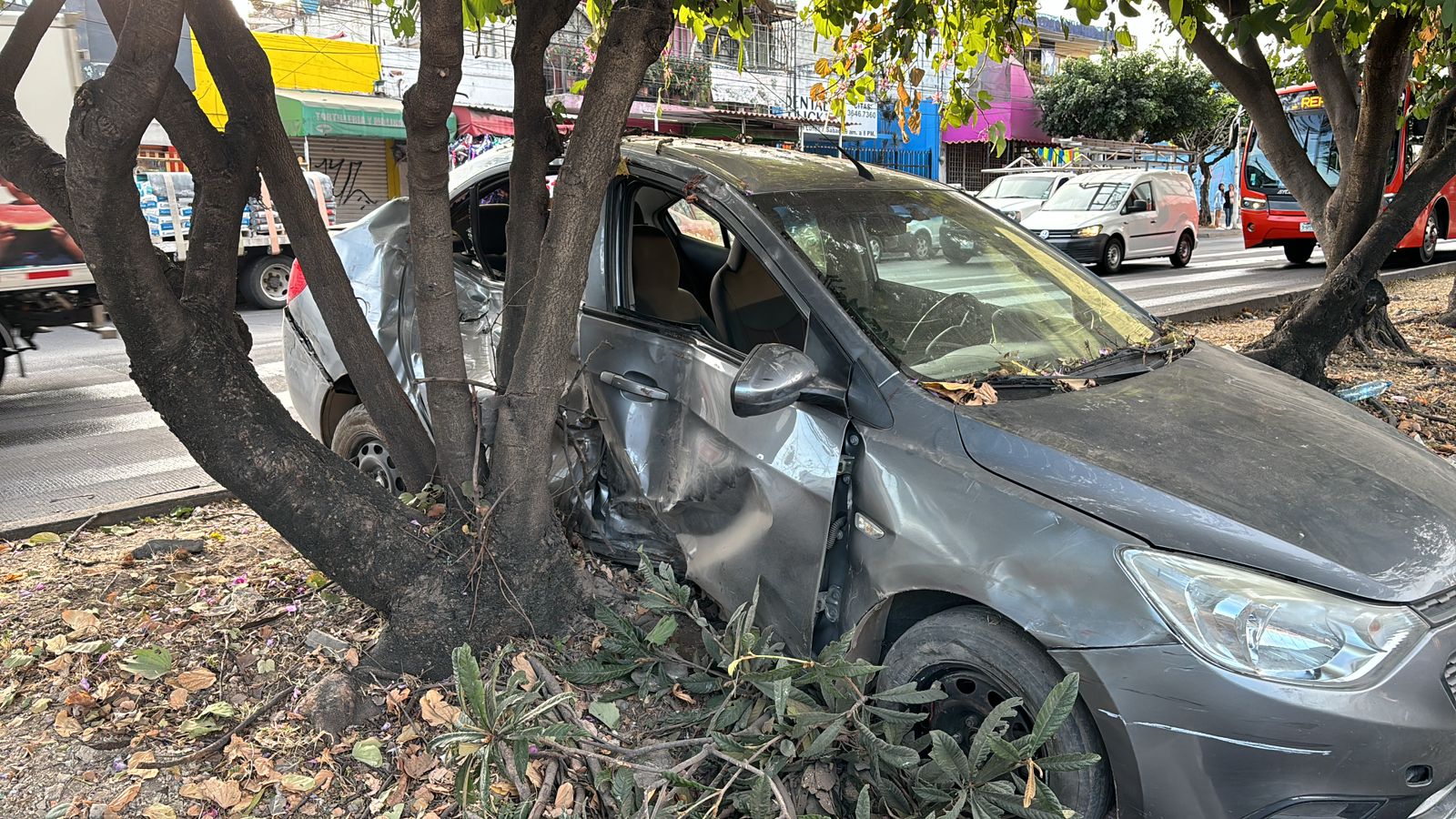 Aveo siniestrado en aparatoso choque sobre 8 de Julio