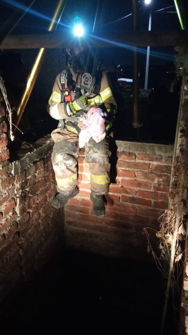 De inmediato y con el uso de equipo de cuerdas, así como el equipo de seguridad de rescate urbano con respirador autónomo, se realizó el descenso dentro de la cavidad por una altura aproximada de 15 metros para realizar las maniobras de extracción.
