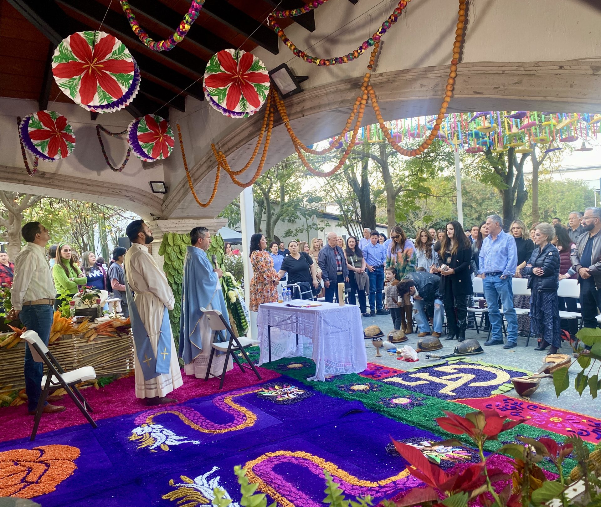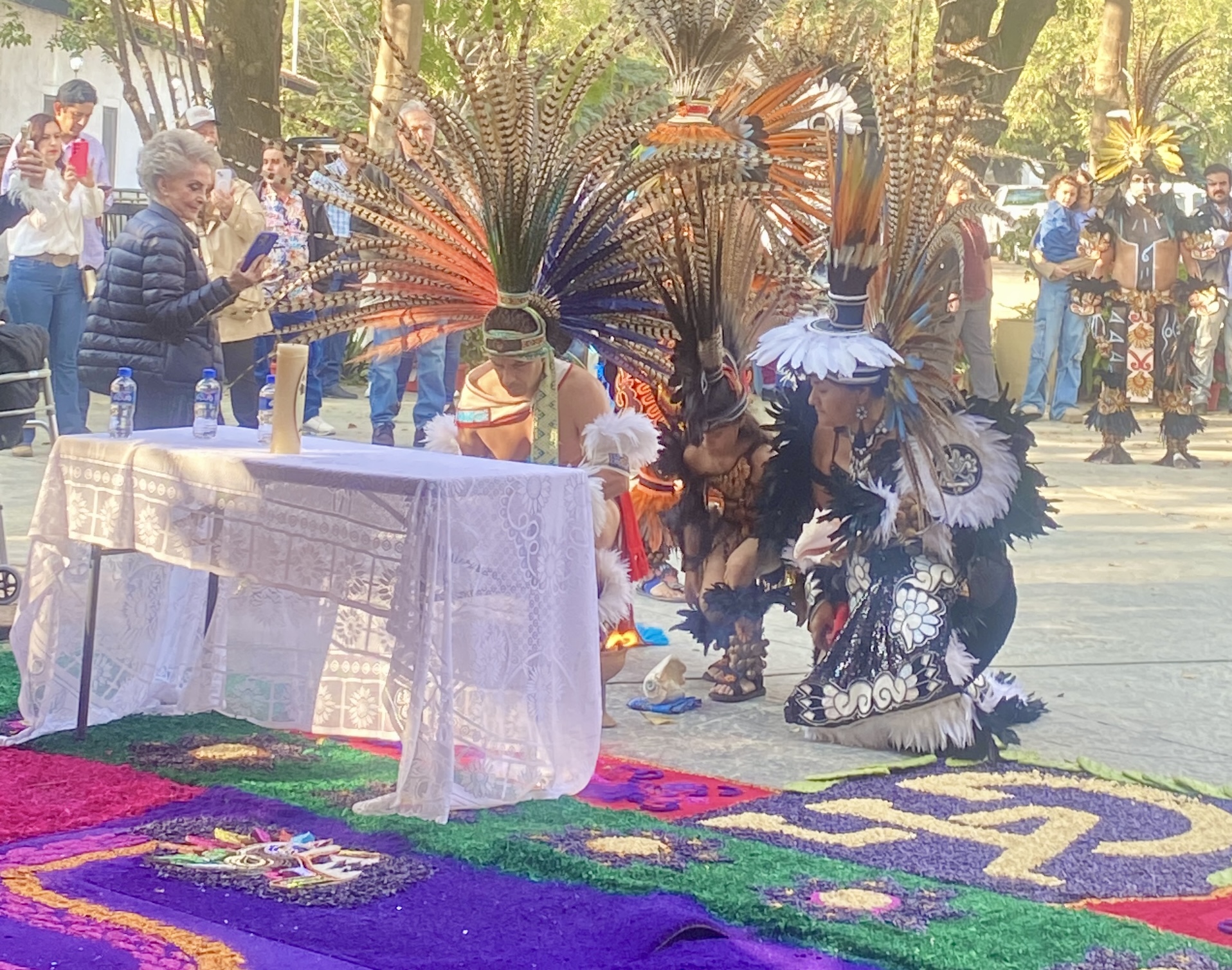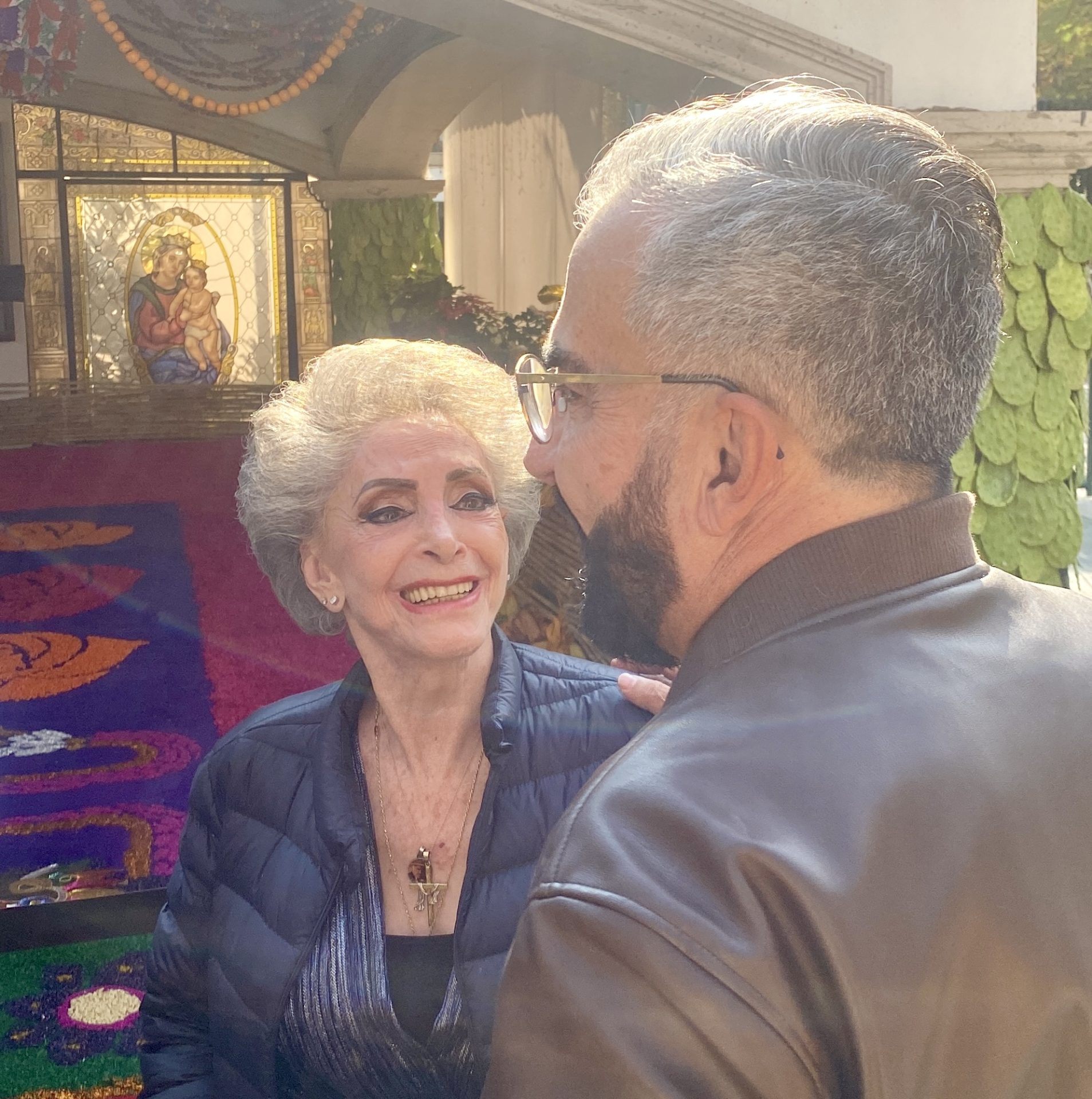 “Más que una decoración, es una ofrenda que por cuarta ocasión tengo el honor de hacer”, comentó. “El primer año ofrecí mis servicios, quería expresarle cariño por medio del arte efímero. Y la señora dijo ‘vente, ya le gustó’. Y este es el cuarto año, es más, y ahora me pagan.”