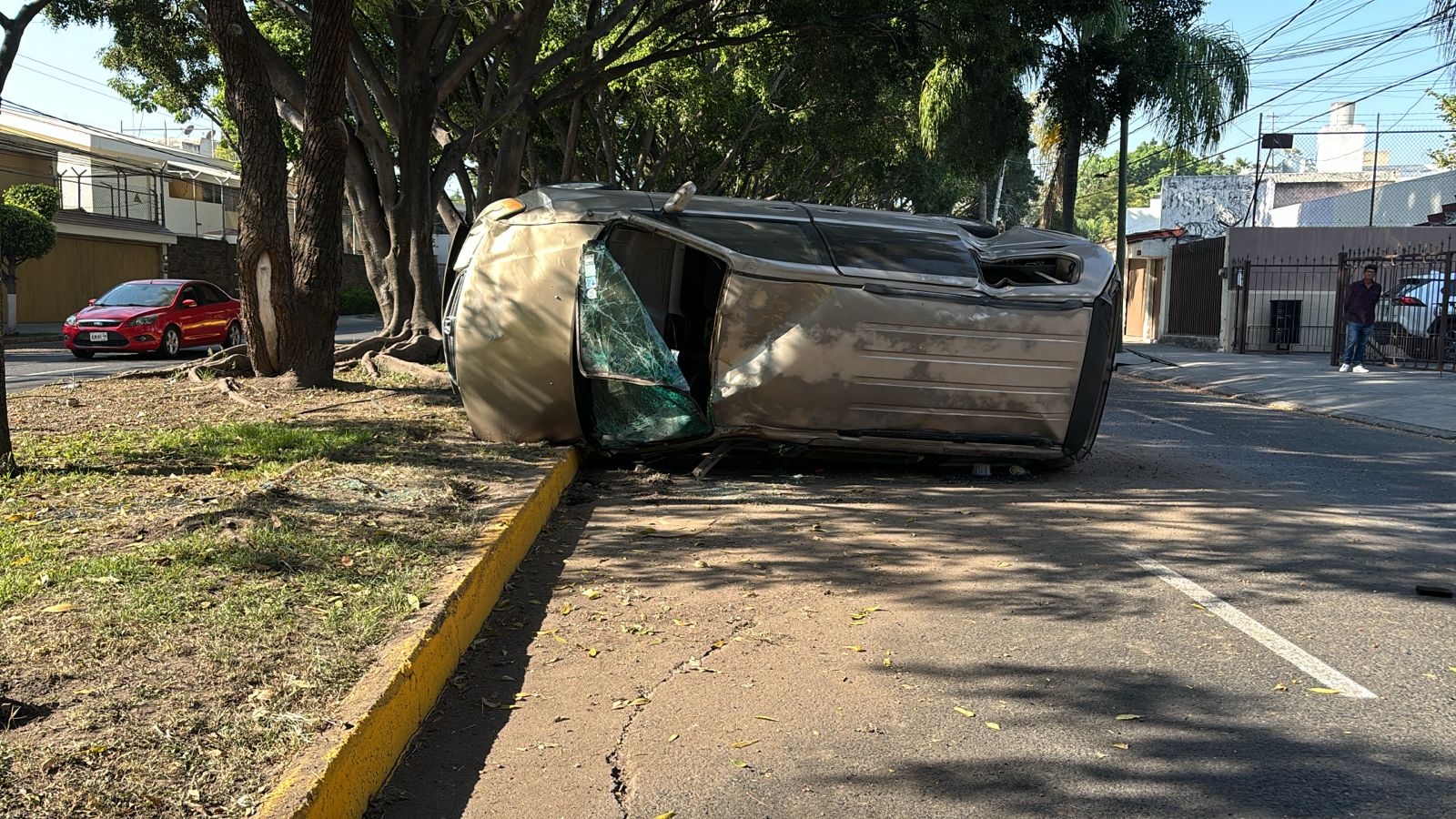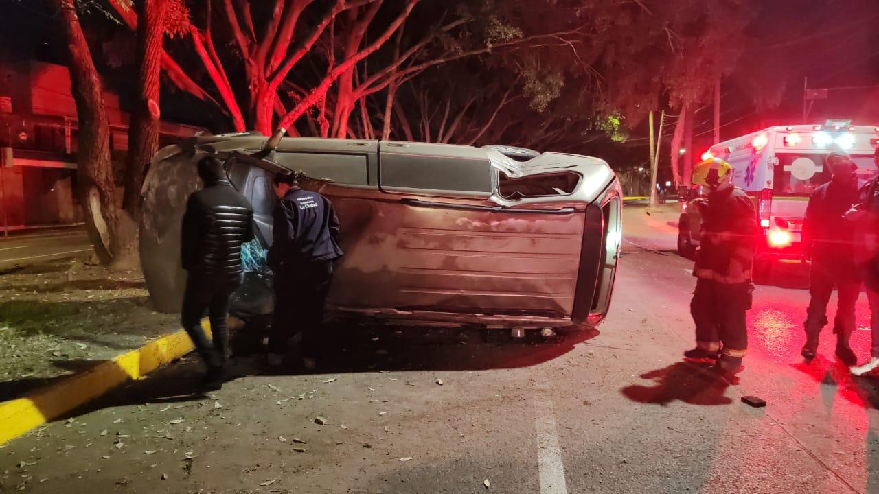 Noche de copas termina en volcadura sobre avenida Lapislázuli