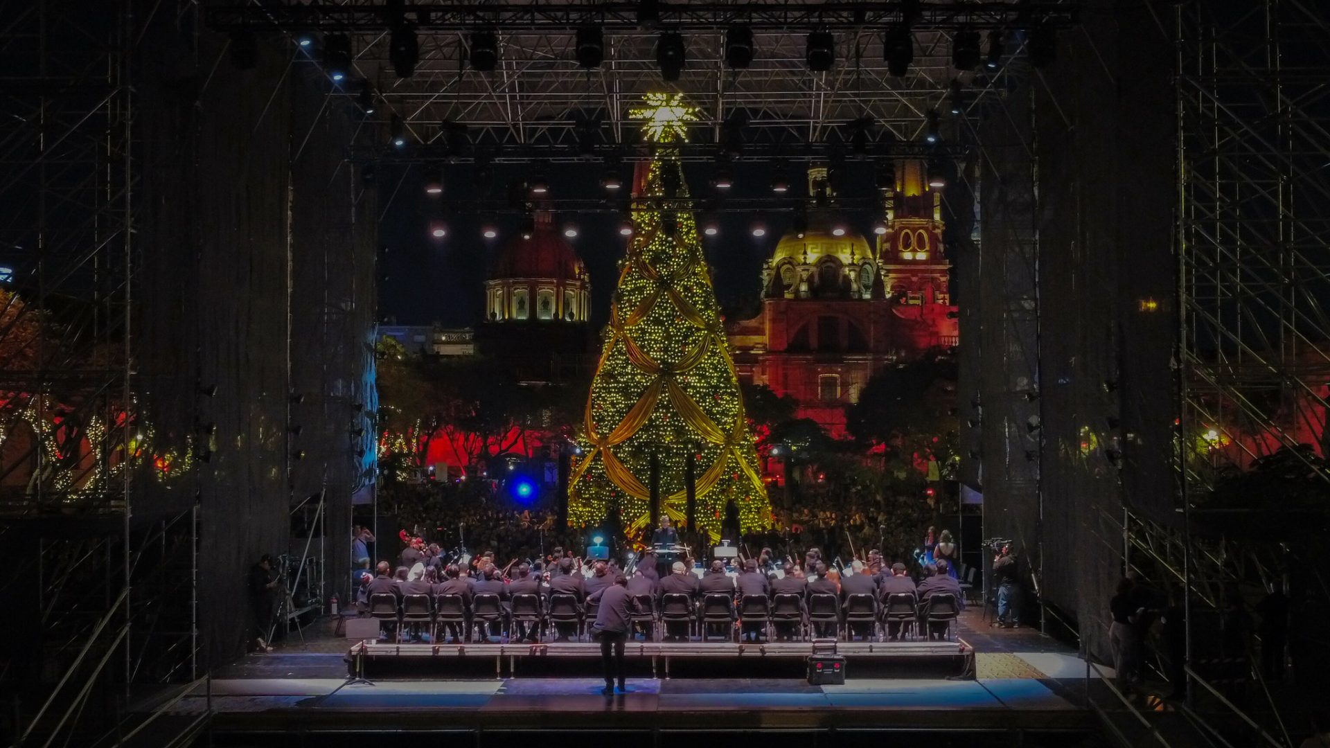 El Gobernador de Jalisco, Pablo Lemus Navarro, inauguró el concierto navideño “El Mesías” de Haendel con la Orquesta Filarmónica de Jalisco y el Coro del Estado de Jalisco en la explanada del Plaza Liberación, este lunes 16 de diciembre, como parte de las actividades del Festival Ilusionante 2024.